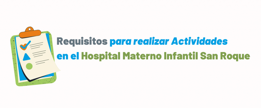 A los fines de promover un ambiente seguro y cuidado para la atención de nuestros pacientes y un entorno laboral adecuado, el Equipo Directivo del Hospital Materno Infantil San Roque dispone e informa que toda institución, asociación u organización que desee realizar alguna actividad en el Hospital debe, previamente, presentar nota de autorización al despacho de la Dirección por correo electrónico a direccion@hospitalsanroque.gob.ar , informando: